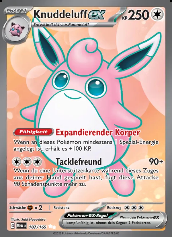 Fähigkeit: Wenn an dieses Pokémon mindestens 1 Spezial-Energie angelegt ist, erhält es +100 KP.