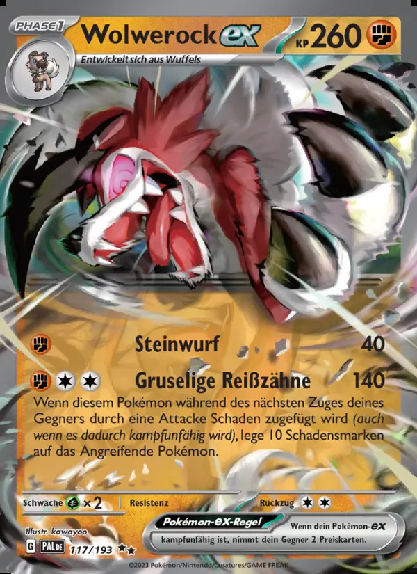 Wenn diesem Pokémon während des nächsten Zuges deines Gegners durch eine Attacke Schaden zugefügt wird (auch wenn es dadurch kampfunfähig wird), lege 10 Schadensmarken auf das Angreifende Pokémon.