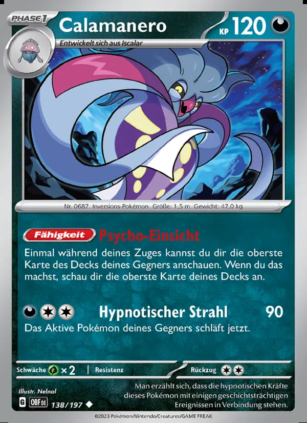 Fähigkeit: Einmal während deines Zuges kannst du dir die oberste Karte des Decks deines Gegners anschauen. Wenn du das machst, schau dir die oberste Karte deines Decks an.