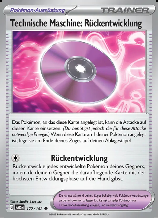 Das Pokémon, an das diese Karte angelegt ist, kann die Attacke auf dieser Karte einsetzen. (Du benötigst jedoch die für diese Attacke notwendige Energie.) Wenn diese Karte an 1 deiner Pokémon angelegt ist, lege sie am Ende deines Zuges auf deinen Ablagestapel.