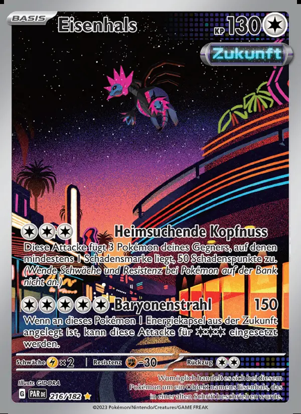 Wenn an dieses Pokémon 1 Energiekapsel aus der Zukunft angelegt ist, kann diese Attacke für {C}{C}{C} eingesetzt werden.