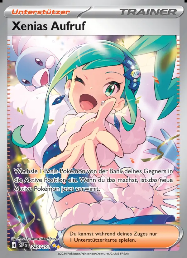 Wechsle 1 Basis-Pokémon von der Bank deines Gegners in die Aktive Position ein. Wenn du das machst, ist das neue Aktive Pokémon jetzt verwirrt.