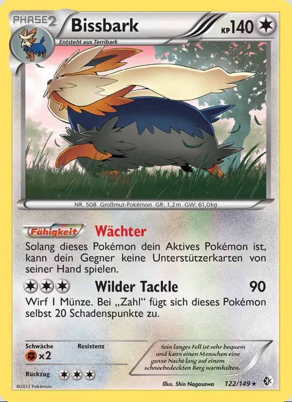 Fähigkeit: Solang dieses Pokémon dein Aktives Pokémon ist, kann dein Gegner keine Unterstützerkarten von seiner Hand spielen.
