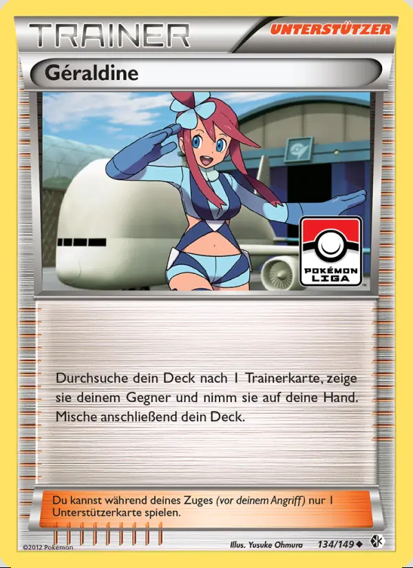 Durchsuche dein Deck nach 1 Trainerkarte, zeige sie deinem Gegner und nimm sie auf deine Hand. Mische anschließend dein Deck.