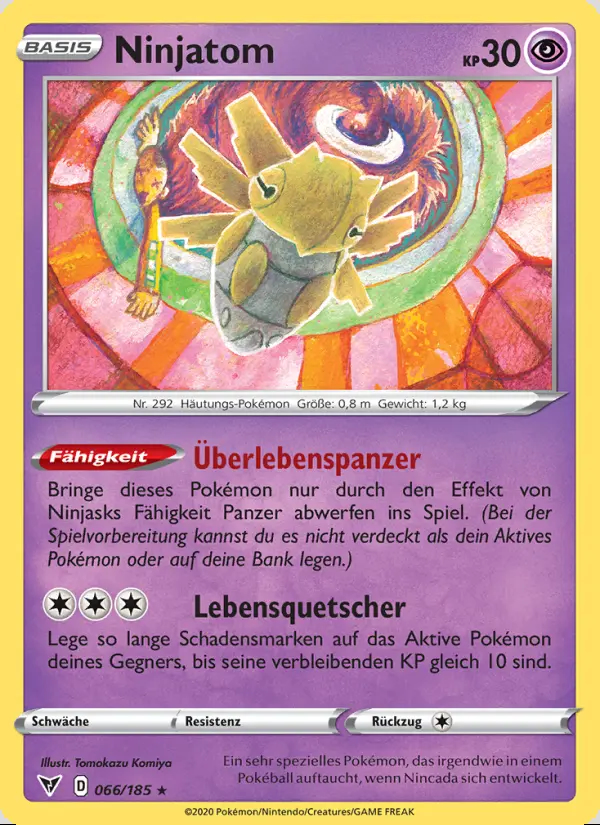 Fähigkeit: Bringe dieses Pokémon nur durch den Effekt von Ninjasks Fähigkeit Panzer abwerfen ins Spiel. (Bei der Spielvorbereitung kannst du es nicht verdeckt als dein Aktives Pokémon oder auf deine Bank legen.)