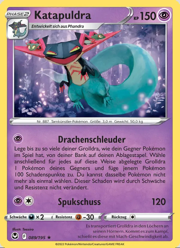 Lege bis zu so viele deiner Grolldra, wie dein Gegner Pokémon im Spiel hat, von deiner Bank auf deinen Ablagestapel. Wähle anschließend für jedes auf diese Weise abgelegte Grolldra 1 Pokémon deines Gegners und füge jenem Pokémon 100 Schadenspunkte zu. Du kannst dasselbe Pokémon nicht mehr als einmal wählen. Dieser Schaden wird durch Schwäche und Resistenz nicht verändert.
