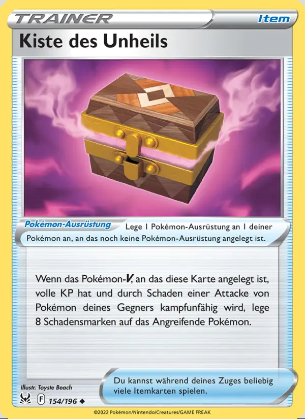 Wenn das Pokémon-V, an das diese Karte angelegt ist, volle KP hat und durch Schaden einer Attacke von Pokémon deines Gegners kampfunfähig wird, lege 8 Schadensmarken auf das Angreifende Pokémon.