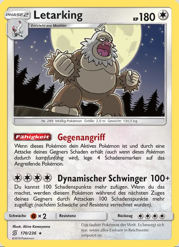 Fähigkeit: Wenn dieses Pokémon dein Aktives Pokémon ist und durch einen gegnerischen Angriff Schaden erhält (auch wenn dieses Pokémon dadurch kampfunfähig wird), lege 2 Schadensmarken auf das Angreifende Pokémon.