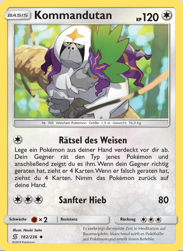 Lege ein Pokémon aus deiner Hand verdeckt vor dir ab. Dein Gegner rät den Typ jenes Pokémon und anschließend zeigst du es ihm. Wenn dein Gegner richtig geraten hat, zieht er 4 Karten. Wenn er falsch geraten hat, ziehst du 4 Karten. Nimm das Pokémon zurück auf deine Hand.