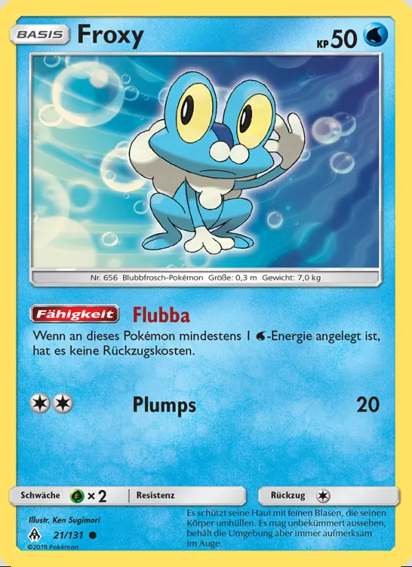 Fähigkeit: Wenn an dieses Pokémon mindestens 1 Water-Energie angelegt ist, hat es keine Rückzugskosten.
