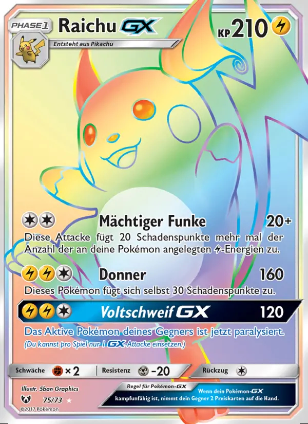 Diese Attacke fügt 20 Schadenspunkte mehr mal der Anzahl der an deine Pokémon angelegten Lightning-Energien zu.