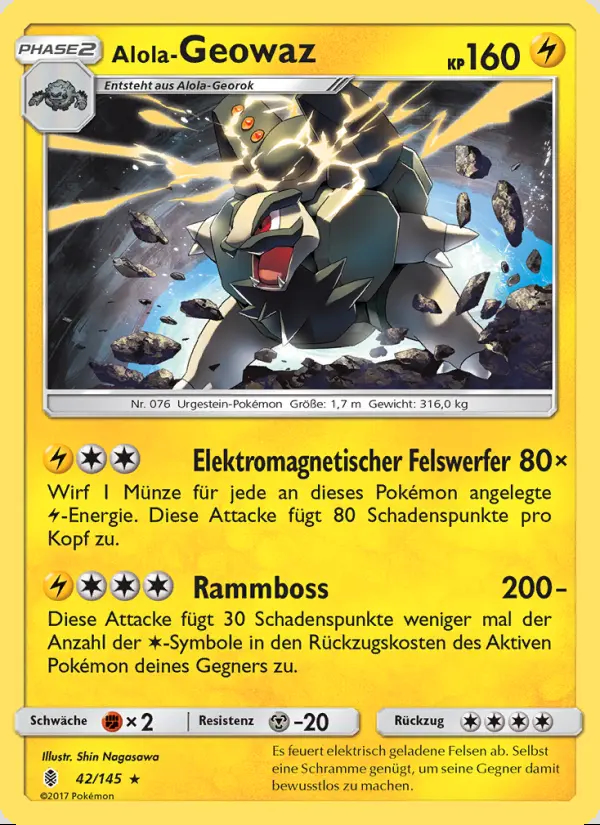Wirf 1 Münze für jede an dieses Pokémon angelegte Lightning-Energie. Diese Attacke fügt 80 Schadenspunkte pro Kopf zu.