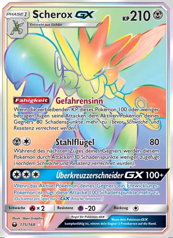 Wenn das Aktive Pokémon deines Gegners ein Entwicklungs-Pokémon ist, fügt diese Attacke 100 Schadenspunkte mehr zu. (Du kannst pro Spiel nur 1 GX-Attacke einsetzen.)