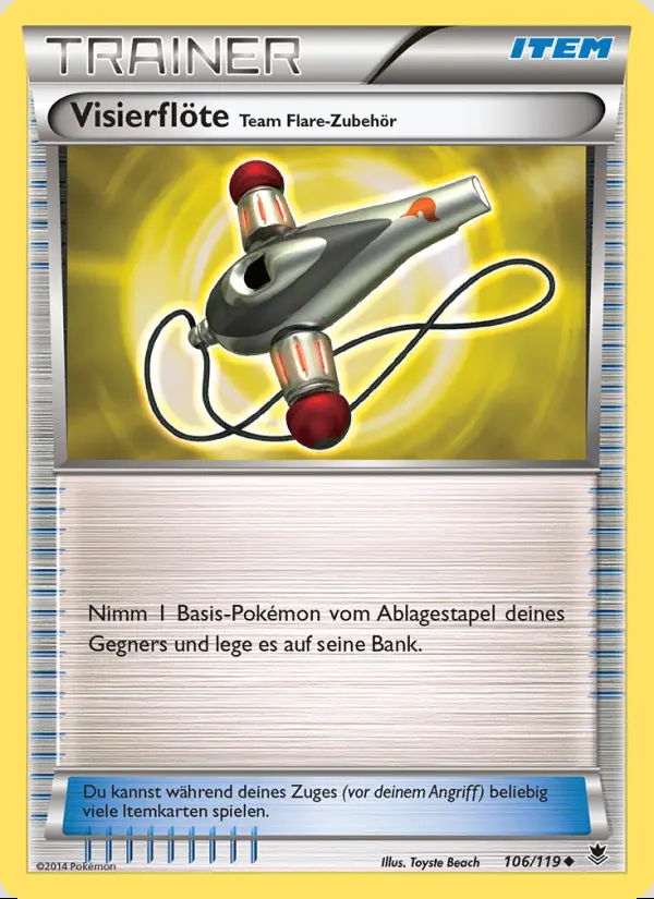 Nimm 1 Basis-Pokémon vom Ablagestapel deines Gegners und lege es auf seine Bank.