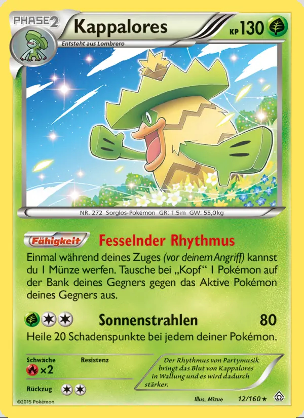 Fähigkeit: Einmal während deines Zuges (vor deinem Angriff) kannst du 1 Münze werfen. Tausche bei "Kopf" 1 Pokémon auf der Bank deines Gegners gegen das Aktive Pokémon deines Gegners aus.